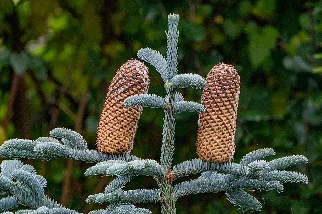 Cones of trees in the genus Abies never reach the ground fully intact. They break apart on the tree to reveal the cones’ seeds. This is why you’ll be hard-pressed to find fully formed fir cones on the ground around a mature fir tree.
