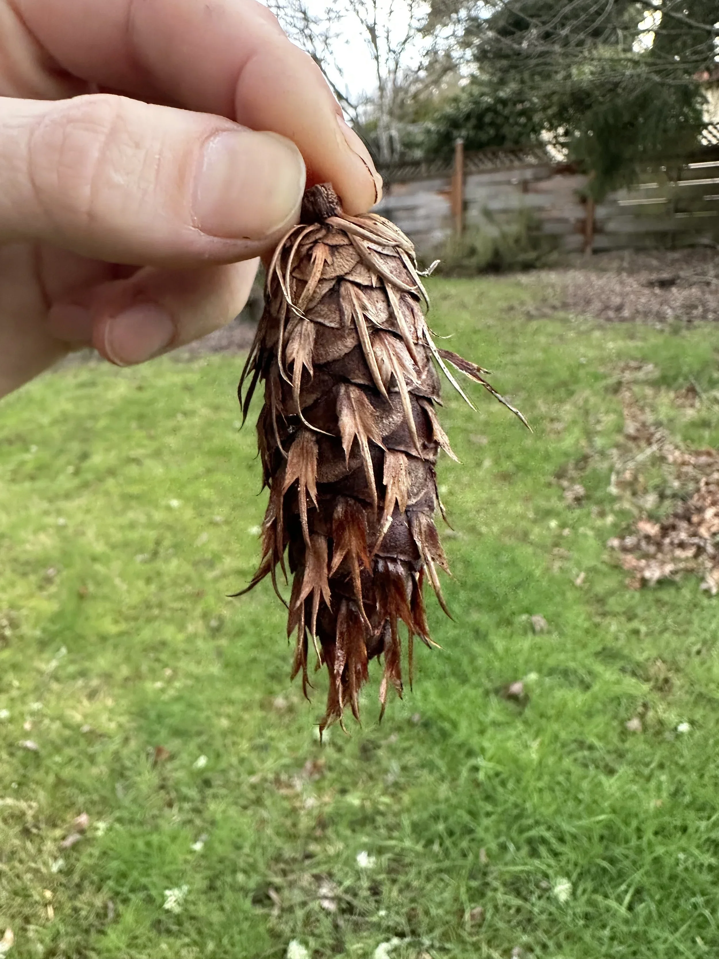 Cone on Picea breweriana, or weeping spruce.